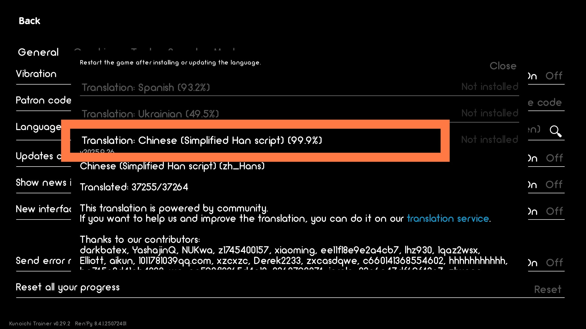 之后重启游戏再进入设置Language就可以看到多出来了Chinese选项选择即可