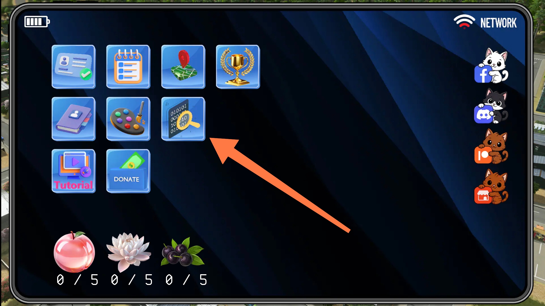 游戏攻略:点击游戏内左上角图标进去第二排最后一个按钮输入作弊码。