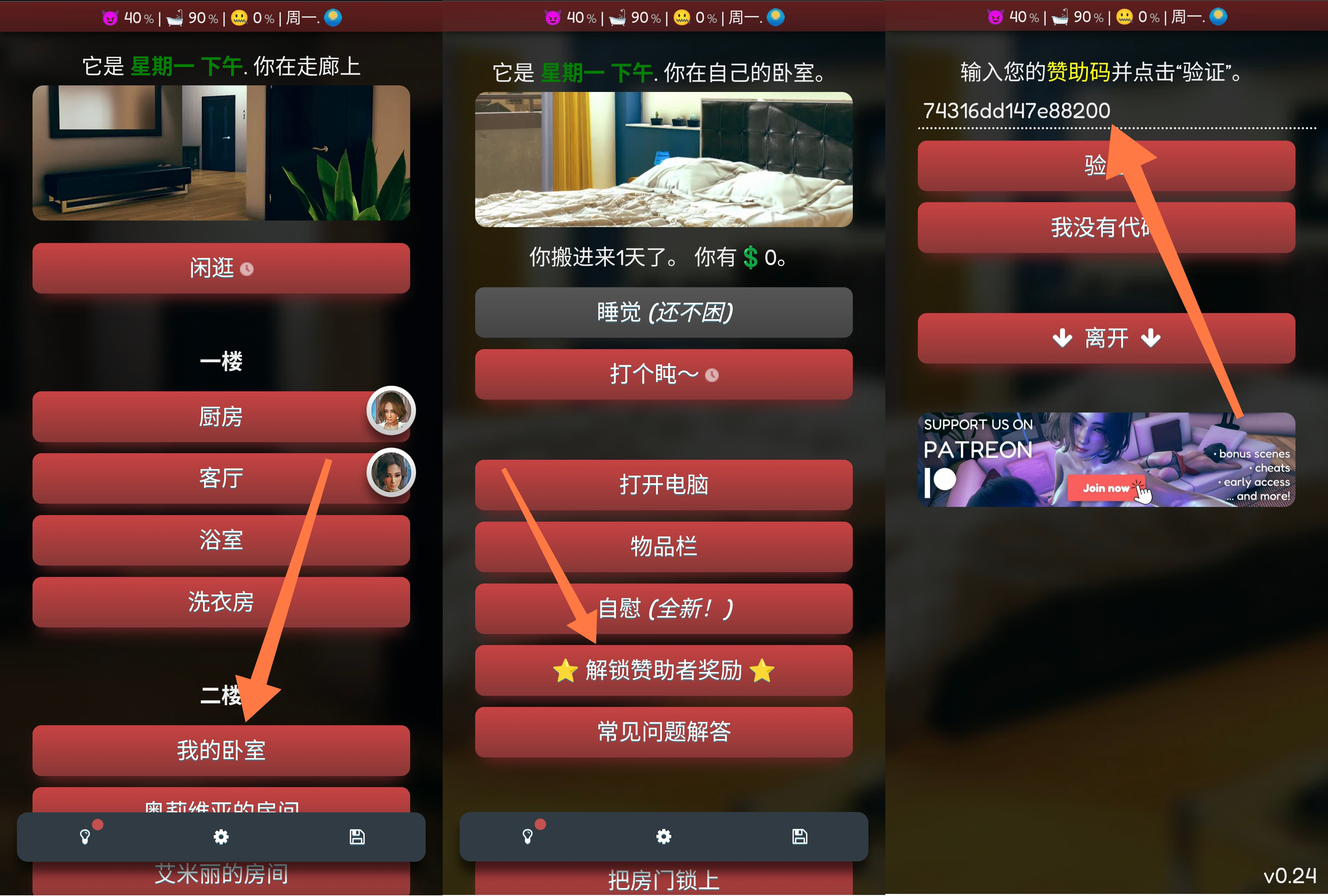 进入我的卧室找到解锁赞助者奖励进去输入作弊码。