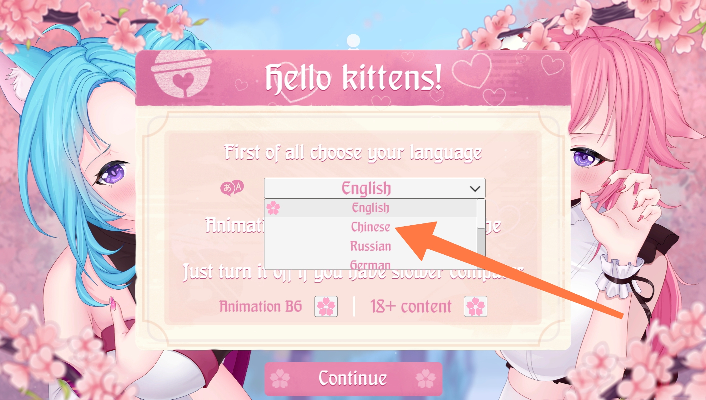 设置中文:进入游戏切换语言为Chinese。游戏介绍:欢迎来到猫娘村,一个坐落在雄伟壮丽群山之间的日本小村庄。这里的猫娘们热情好客,会用传统的日式点心、寿司和生鱼片款待您。您将邂逅可爱的猫娘,并帮助她们完成日常琐事,而作为回报,她们也会给予您意想不到的帮助♥
