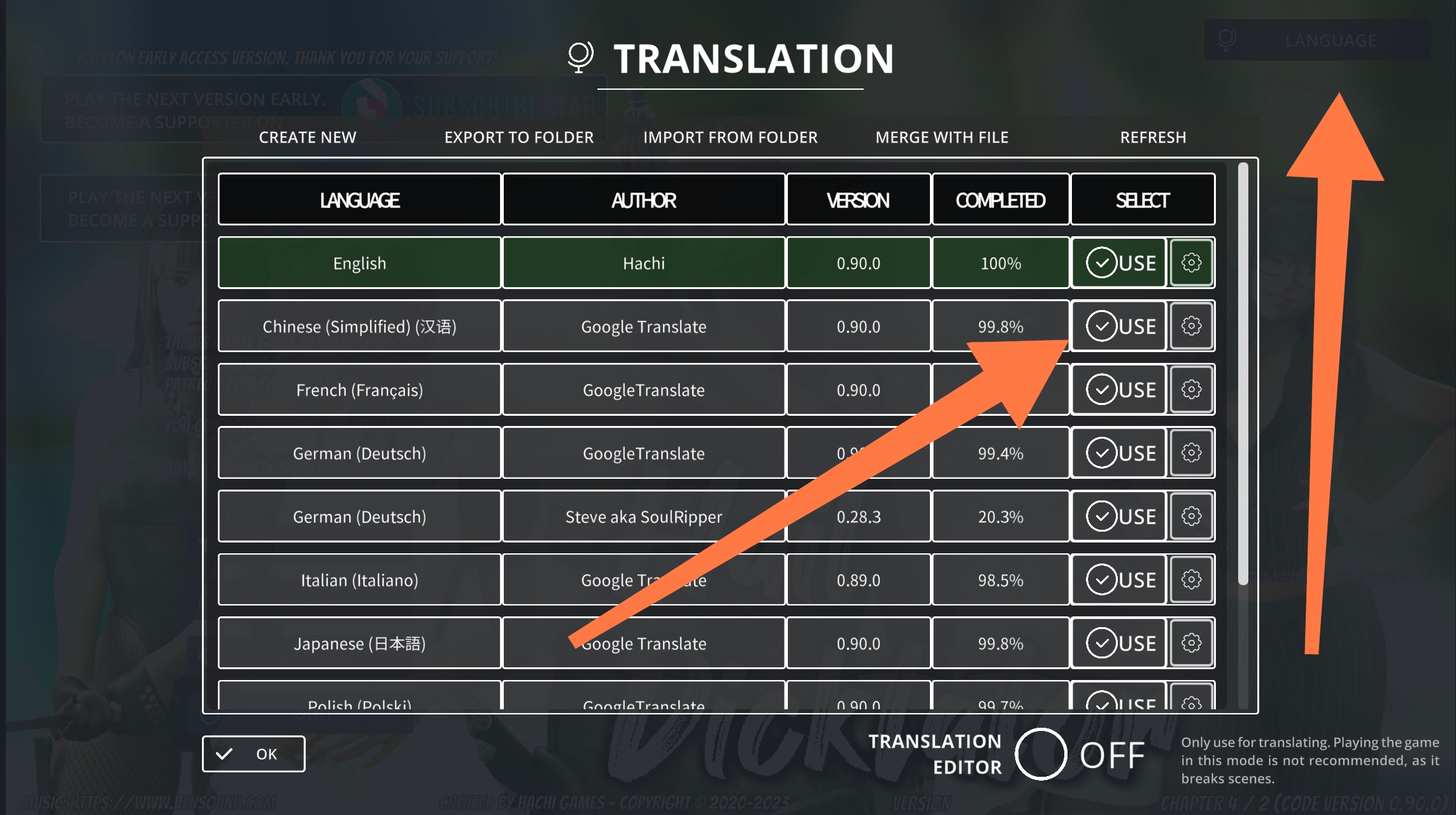 设置中文:点右上角LANGUAGE按钮找到汉语点击后面的USE。